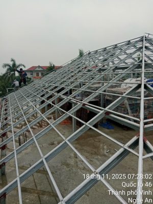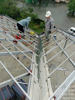 Lắp dựng khung mái, xà gồ, rui mè và ngói